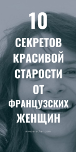 В целом, заключает американка, самое главное — уважение к себе и своему возрасту. А главный урок от французских женщин, стареющих красиво — не лениться жить с удовольствием. В это понятие входит все, от вкусной еды и секса до красивых вещей, любимых хобби и путешествий. В этом и состоит манифест красивой француженки пятидесяти лет, что пьет свой бокал вина в кафе с видом на Елисейские поля — «Я зрелая женщина, я многого достигла и наслаждаюсь собой, городом и этим моментом».