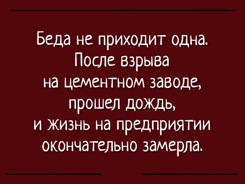 Чтобы грустная ситуация начала казаться немного проще, над ней надо пошутить. При чтении таких грустных анекдотов, вам, возможно, захочется одновременно и плакать, и смеяться, но смеяться все-таки сильнее. Да потому что смешно же!