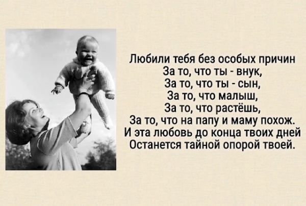 Я подписалась на сообщество, в котором эти строчки были опубликованы. Стала изучать — какие материалы они выкладывали в последнее время. И — снова удача! — читаю стихотворение советского поэта, который писал для детей — Валентина Берестова. Оно называлось «Любили тебя без особых причин», кажется, оно включено в школьную программу начальных классов. Только вот великий смысл этих строчек невозможно понять в 10 лет, поймешь их тогда, когда прошагаешь половину жизненного пути: