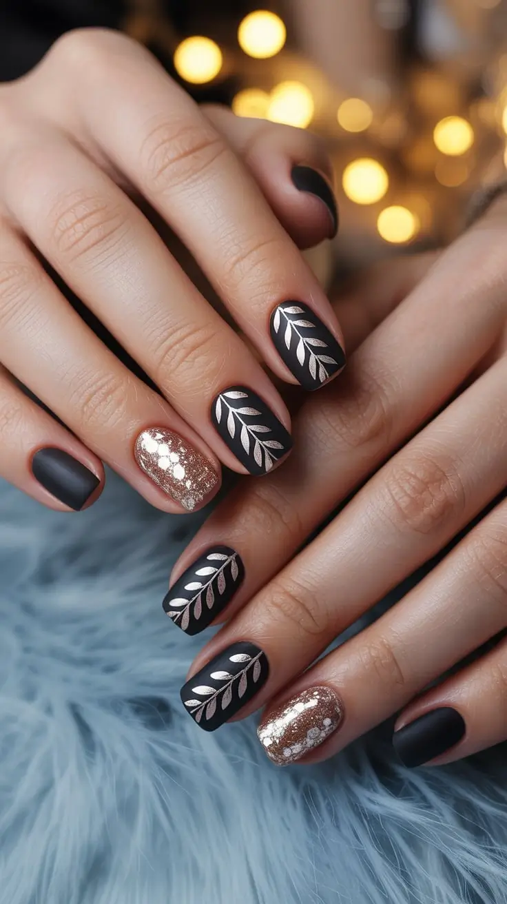Этот дизайн неизменно напоминает мне о тёплых вечерах у камина, о золотых украшениях, сверкающих на объёмном вязаном свитере. Даже самый простой маникюр порой может завораживать.