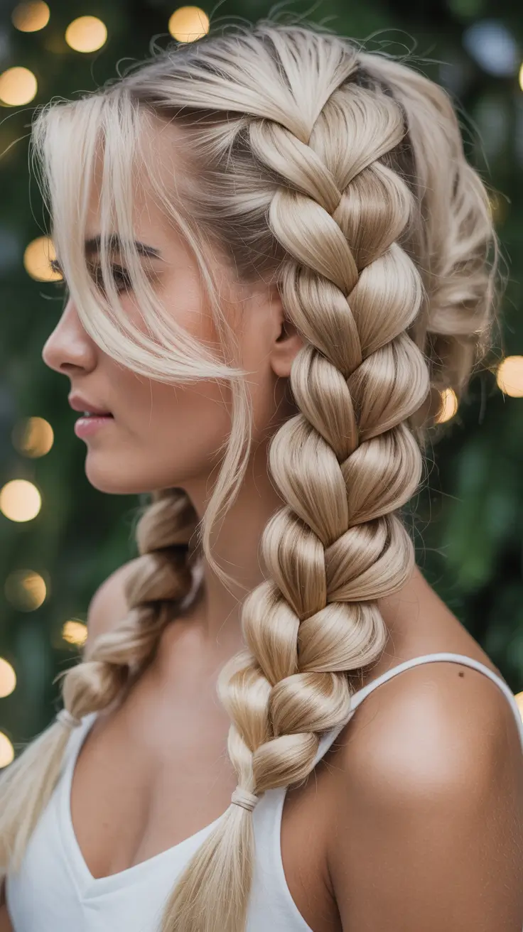 Голландские косы — это нечто вечное, особенно если они заплетены в две большие косы, которые очень эффектно смотрятся на светлых волосах. Эта прическа выглядит по-домашнему и излучает ту же беззаботность, которая так важна после катания на лыжах или во время перерыва на кофе в магазине. Косички объёмные, атласные и чётко очерченные, они обрамляют лицо, создавая чистый, но строгий контур, а свисающие пряди спереди не дают ему выглядеть слишком строгим.
