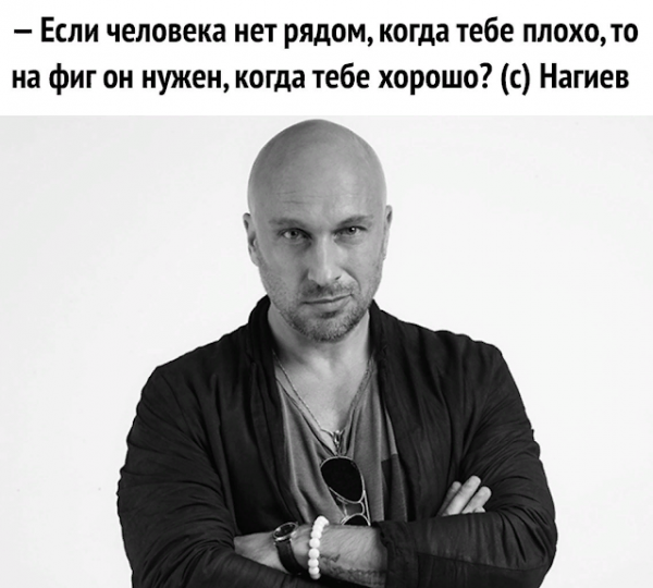 Если Нагиев выдает какие-то тирады, то делает он это с интонацией человека, который постиг жизнь. Назидательный тон, не терпящий возражений. Амплуа такое у человека: уверенный в себе альфа-самец.