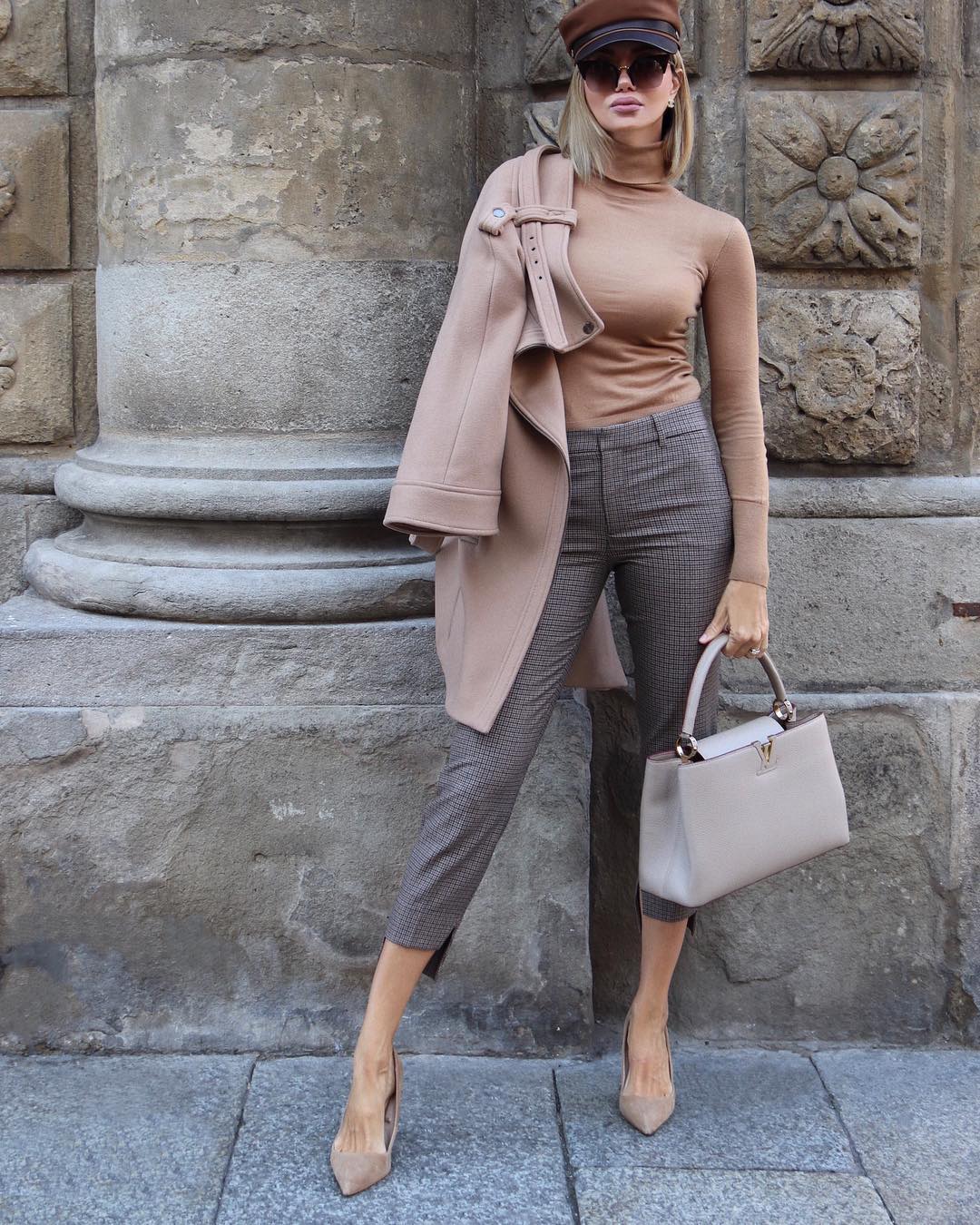 Этот по-французски изысканный способ модно одеться – отличное решение для тех, кто предпочитает лаконичность, а не вычурные тренды и активные принты. Образ получится очень элегантным, несмотря на всю свою простоту, а главное – очень универсальным, ведь будет прекрасно смотреться и в офисном стиле, и на прогулке. А если подобрать брюки или блузу понаряднее, и добавить к образу элегантнве лодочки на шпильке или стильные босоножки вместо удобной обуви на низком ходу,можно отправиться и на торжественное событие.