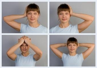6. Напрягая мышцы шеи, надави левым виском на левую ладонь (3 раза по 7 секунд). А теперь правым виском – на правую ладонь (3 раза по 7 секунд).
