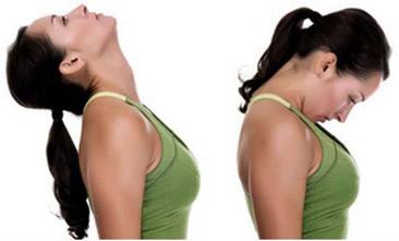 7. Держи голову прямо. Преодолевая сопротивление напряженных мышц шеи, постарайся прижать подбородок к яремной ямке. Затем запрокинь голову вверх, стараясь тянуться подбородком как можно выше.