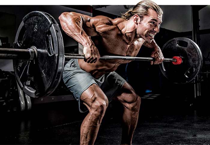 Если во время выполнения упражнения вроде тяги в наклоне и тяги Т-грифа вы чувствуете, что не можете удержать естественный прогиб в пояснице, завершайте подход. Полезно также слегка сгибать ноги в коленных суставах.