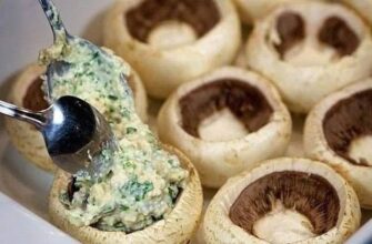 Шампиньоны, фаршированные курицей и сыром, получаются сытными и оригинальными на вкус.