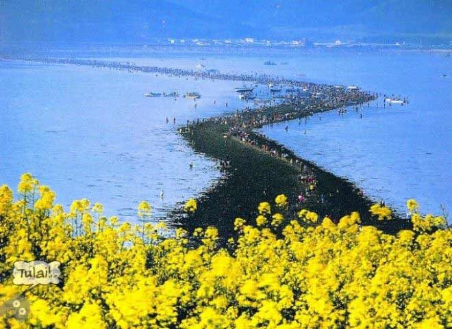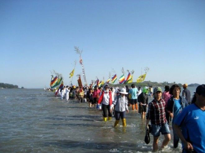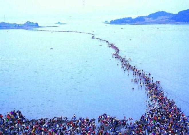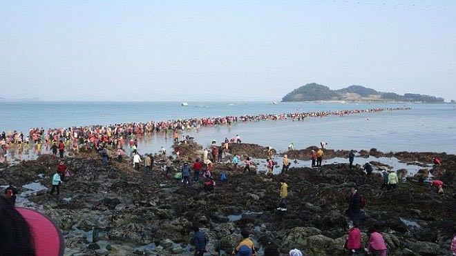 Вода между двумя районами внезапно делится на две части, на один час, открывая дорогу шириной 40 метров и длинной 2,8 км и, таким образом, соединяет острова Чиндо и Модо. В чем же причина такого необычного феномена.