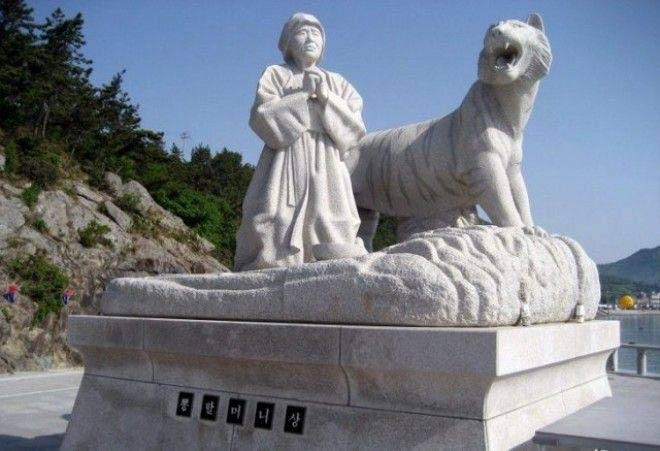 Дракон услышал мольбы старушки, и морская вода расступилась, открывая старушке дорогу на соседний остров.