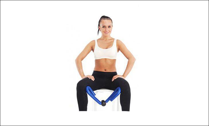 Упражнение для внутренней поверхности ног может выполняться из положений стоя, сидя и лежа. Самый простой и классический пример – сидя на стуле, зажимаете ваш мини-тренажер бедрами и начинаете выполнять сведение и разведение.