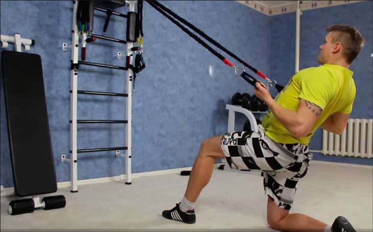 Также не забудьте увеличить нагрузку путем подбора эспандеров. Как вы помните, они различаются по цвету в зависимости от сопротивления растяжению. Ваши цвета это красный, синий или черный (фиолетовый). Остальные оставьте дамам. Число повторений снизьте до 10-15.