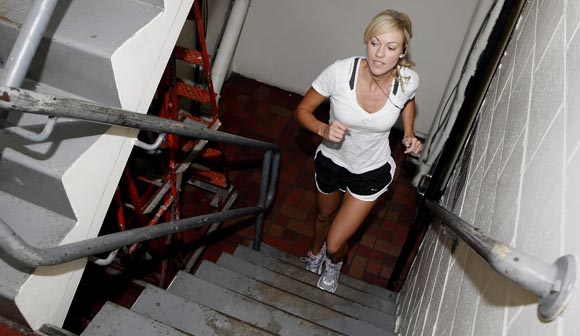 - Можно через ступеньку и с гантелями — 15-30 минут будет вполне достаточно.