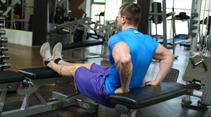 - Отжимания от скамьи – 3-4 подхода по 6-12 повторений.