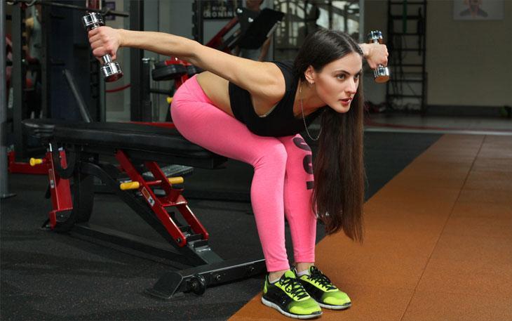 - Разгибание руки с гантелью или на вертикальном блоке в наклоне.
