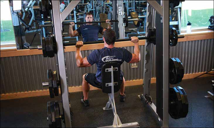 - Жим штанги сидя в смите – 12-15 повторений