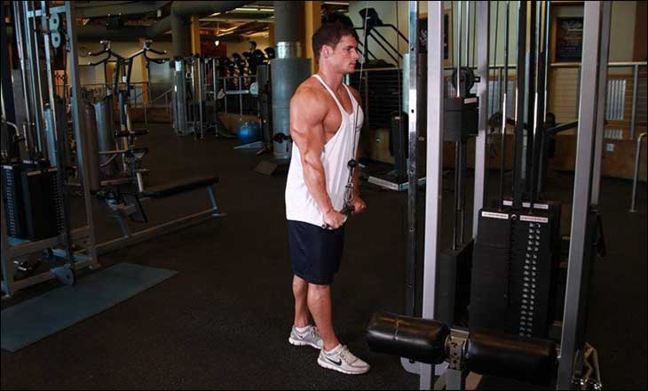 - Разгибания на верхнем блоке стоя – 10-12 повторений