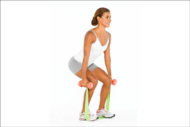 К примеру, во фронтальных приседаниях вы берете гантели в руки, закидываете на плечи и приседаете, но если нагрузки не хватает, возьмите в руки еще и эспандер. Другой его конец закрепите под ногами. Но в последнем случае руки с гантелями лучше опустить вниз, так как в поднятом положении держать их будет довольно трудно.