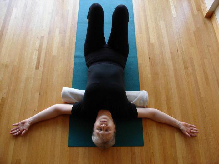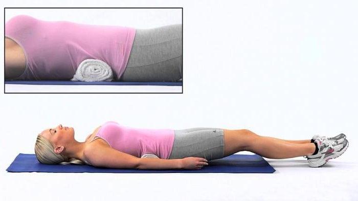 2. Садимся на достаточно твердую горизонтальную поверхность (мягкая кровать не подойдет, лучше лежать на кушетке, массажном столе или просто на полу), кладем свернутый валик.