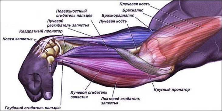 Бицепсы хоть и будут работать, но минимально. А вот предплечьям придется потрудиться. Ведь от силы хвата зависит то, сколько вы подтянитесь. Поэтому советую вам не откладывать в долгий ящик его тренировку. Уделите внимание сгибателям и разгибателям пальцев, брахирадиалису (сгибает руки в локтевом суставе), пронаторам и супинаторам (поворачивают ладонь вниз и вверх соответственно).