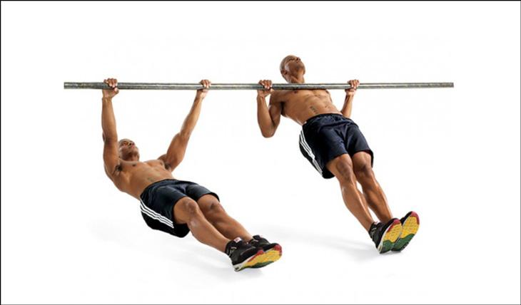 Нагрузит равномерно обе головки бицепса и широчайшие. Старайтесь тянуть перекладину к животу. Это не значит, что вы должны подтягиваться до пупка. Как и в классике подтягивайтесь до груди, но мысленно представляйте, как хотите подтянуть перекладину именно к пупку.