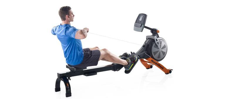 - Гребной тренажер – один из лучших вариантов. При не слишком высокой цене он дает лучшую нагрузку на верхнюю часть тела. В сочетании с обычными пробежками задействует максимальное количество мышц.
