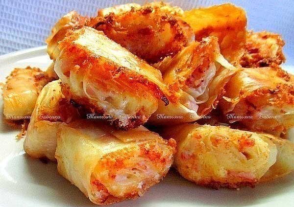 Раскрутить лаваш и смазать ранее подготовленной начинкой, свернуть в рулет и нарезать на кусочки, обжарить в сковородке и подавать, очень вкусно к холодному пиву, а также можно взять с собой на природу.