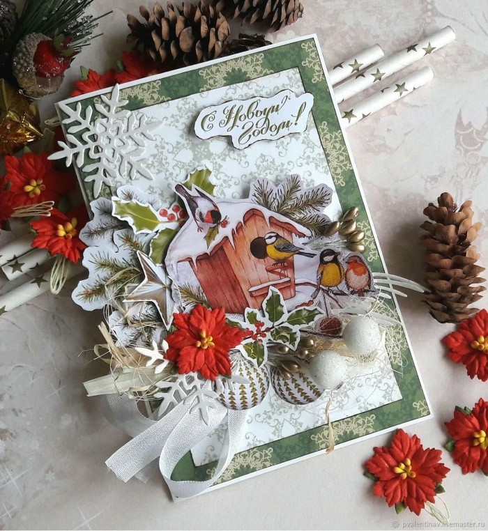 Для тех, кто хочет создавать уникальные шедевры ручной работы, мы предлагаем отбросить в сторону все сомнения и создать их своими ручками. Для ее создания вы можете использовать все, что найдете у себя дома, не бойтесь шить, вязать и рисовать. Позвольте своему воображению создать красивые новогодние открытки.