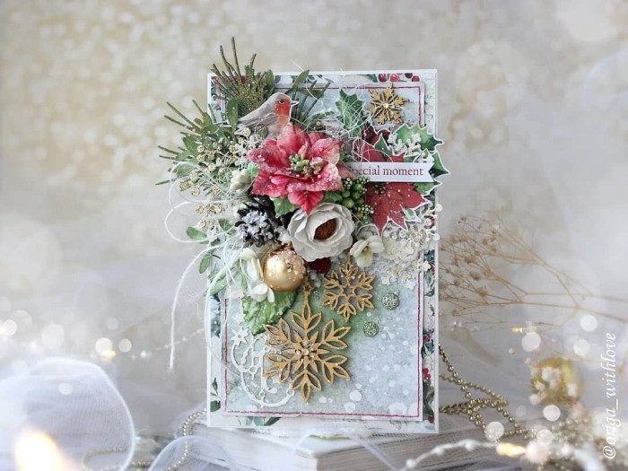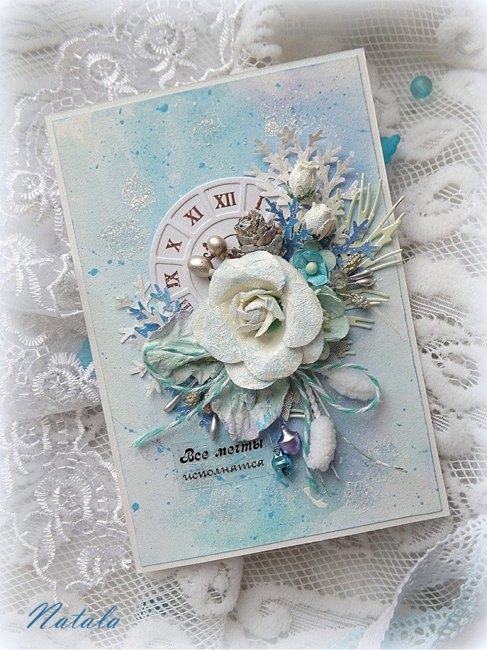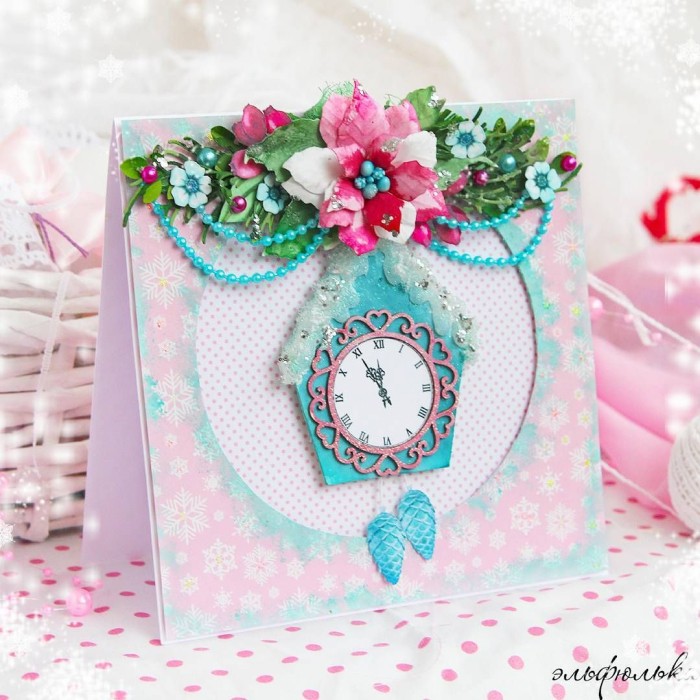 - Дайте открытке подсохнуть и только после этого приступайте к приклеиванию следующих элементов.