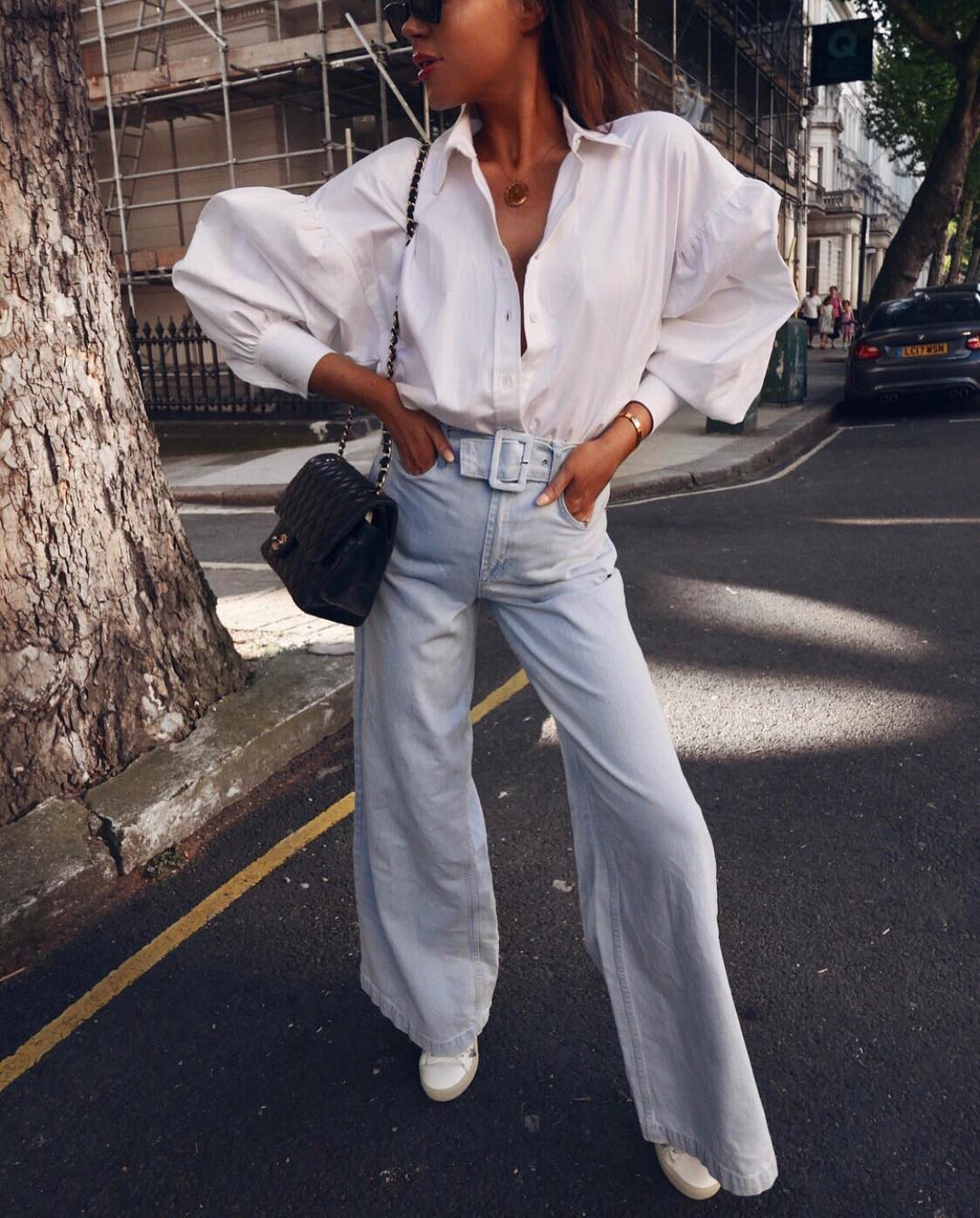 Делайте ставку на контраст – если надели оверсайз-куртку, возьмите с собой микросумочку. Не волнуйтесь, подобное противопоставление размеров будет выигрышным. А вот если вы возьмете большую сумку-тоут в паре с безразмерным нарядом, то рискуете выглядеть громоздко.
