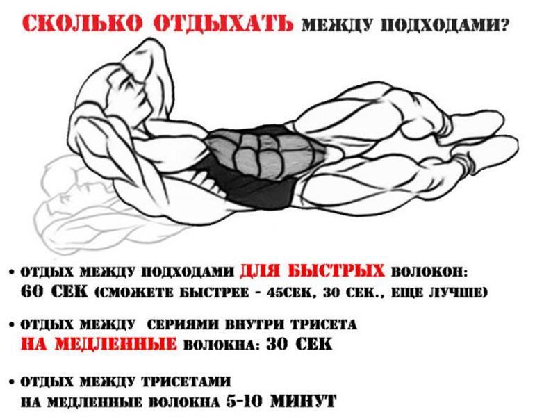 Частота перерывов зависит от физического тонуса. Чем тренируемый моложе, тем срок восстановления меньше.