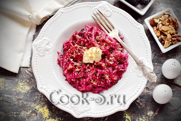 Салат Пиковая дама готов! Для украшения можно посыпать орешками.