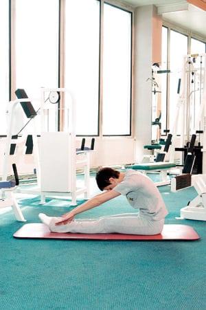 Исходная позиция. Сядьте на пол, согните колени, придвигая ступни как можно ближе к тазу. Обхватите щиколотки и, нагнувшись к ним, скруглите спину, прижимая подбородок к груди. Ваше тело по форме должно напоминать шар.