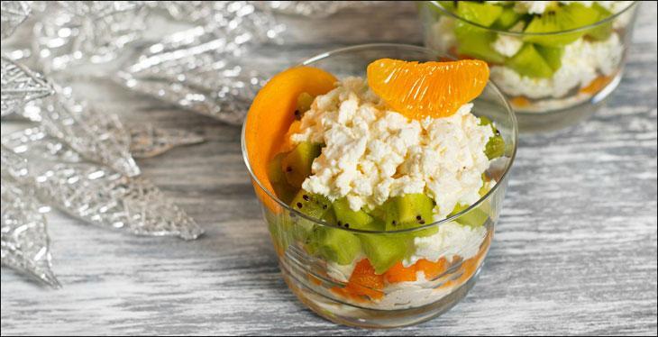 - Нарезанные фрукты, заправленные натуральным йогуртом 100 гр