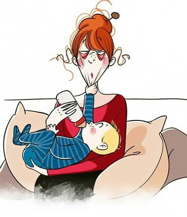 Часто говорят, что быть президентом- самое сложное дело. Однако художник из Франции по имени Натали Джомард не согласна с этим мнением. Она считает, что самое сложное- быть матерью. Натали сделала правдивые и невероятно смешные иллюстрации о том, с чем сталкивается женщина в период материнства.