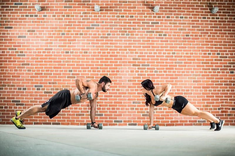 - Силовые тренировки. Для девушек они полезны тем, что эффективно подтягивают мышцы и кожу, повышают тонус. Парни используют такой вид нагрузки для увеличения объёма мышц. Укрепление мышц тела происходит сверху вниз, сначала прорабатывается плечевой пояс, затем спина и пресс, а только потом ноги. Работать надо в среднем темпе с использованием собственного веса и утяжелителей. Каждое упражнение выполняется по 15 раз в три подхода.