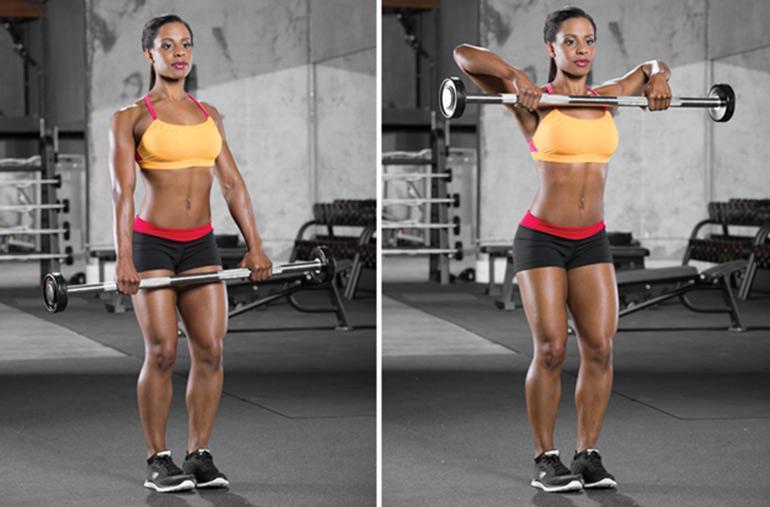 [expert_bq id=7747]При выполнении упражнения держите спину ровно, а поясницу немного прогнутой. Таз отодвиньте назад. Ноги на ширине плеч. Взгляд направлен вперед. В нижнем положении руки выпрямлены, и гриф касается передней части бедер. При этом кисти на всей траектории старайтесь держать на одной линии с предплечьями, иначе можно получить травму. Если чувствуете, что кисти в верхнем положении сильно изгибаются, уменьшите высоту подъема штанги.[/expert_bq]