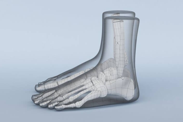 Стопа состоит из множества небольших костей, располагающихся в несколько рядов. Самые большие из них – это пяточная и таранная. Последняя находится сразу над пяточной костью и образует вместе с большеберцовой и малоберцовой костью голеностопный сустав.