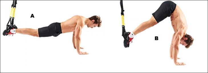 - Складка с использованием TRX петель – выполните 2-3 сета по 8-12 повторений.