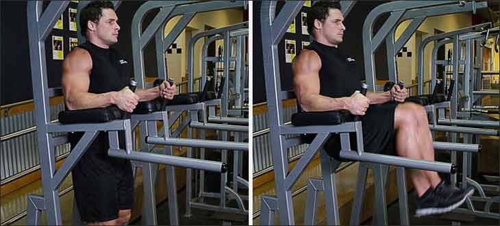 - Подъемы согнутых ног на уголке – выполните 3-4 сета по 12-20 повторений.